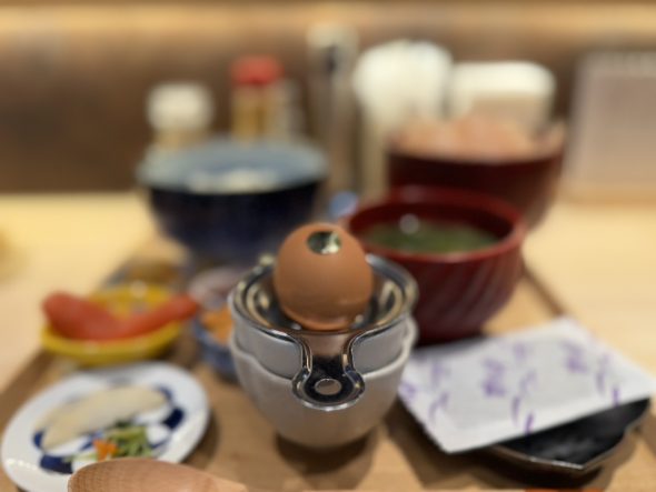 白身だけを白米に回しかけ、米粒一つひとつをコーティングするように混ぜる。その上に黄身をそっと乗せ、混ぜ合わせ、最初は塩だけでいただく。黄身は驚くほど濃厚で、トリュフ塩がそのコクを静かに引き立てる。気づけば、卵かけご飯というより、一品料理として成立している感覚だ。