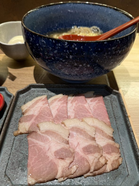 チャーシューは、そのまま食べるとワインが欲しくなるほど生ハムのような印象だが、スープに入れると表情が変わり、麺との絡みが際立つ。