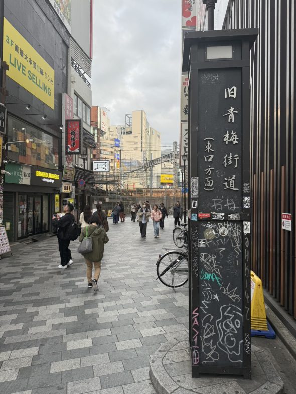巨大な再開発工事のすぐ横で、江戸時代の街道を示す杭が立っている。この光景はとても象徴的でした。都市が作り替えられている最中でも、街の時間は完全には消えていないのです。